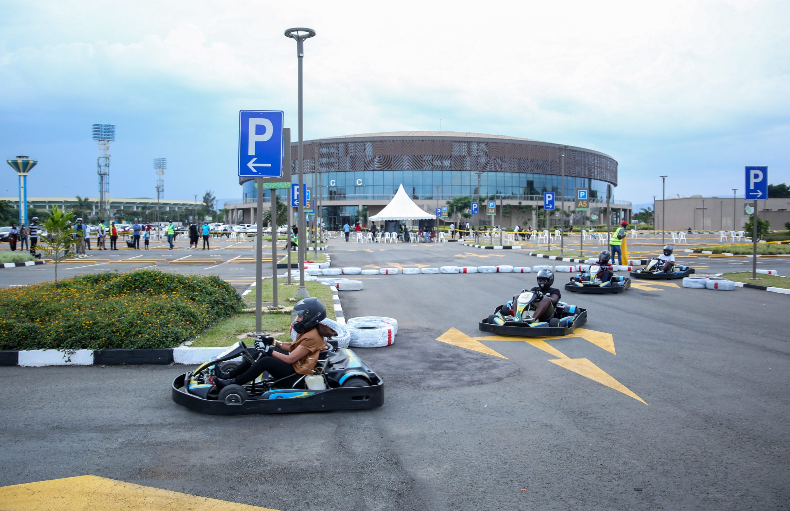 Motorsport road racing with open-wheel, four-wheeled vehicles known as Go-karts during the race at Kigali Arena on December 13, 2020