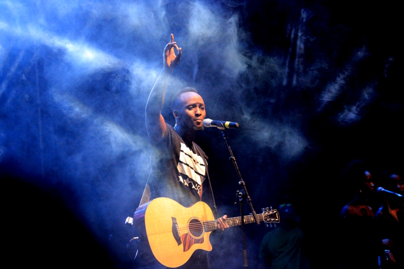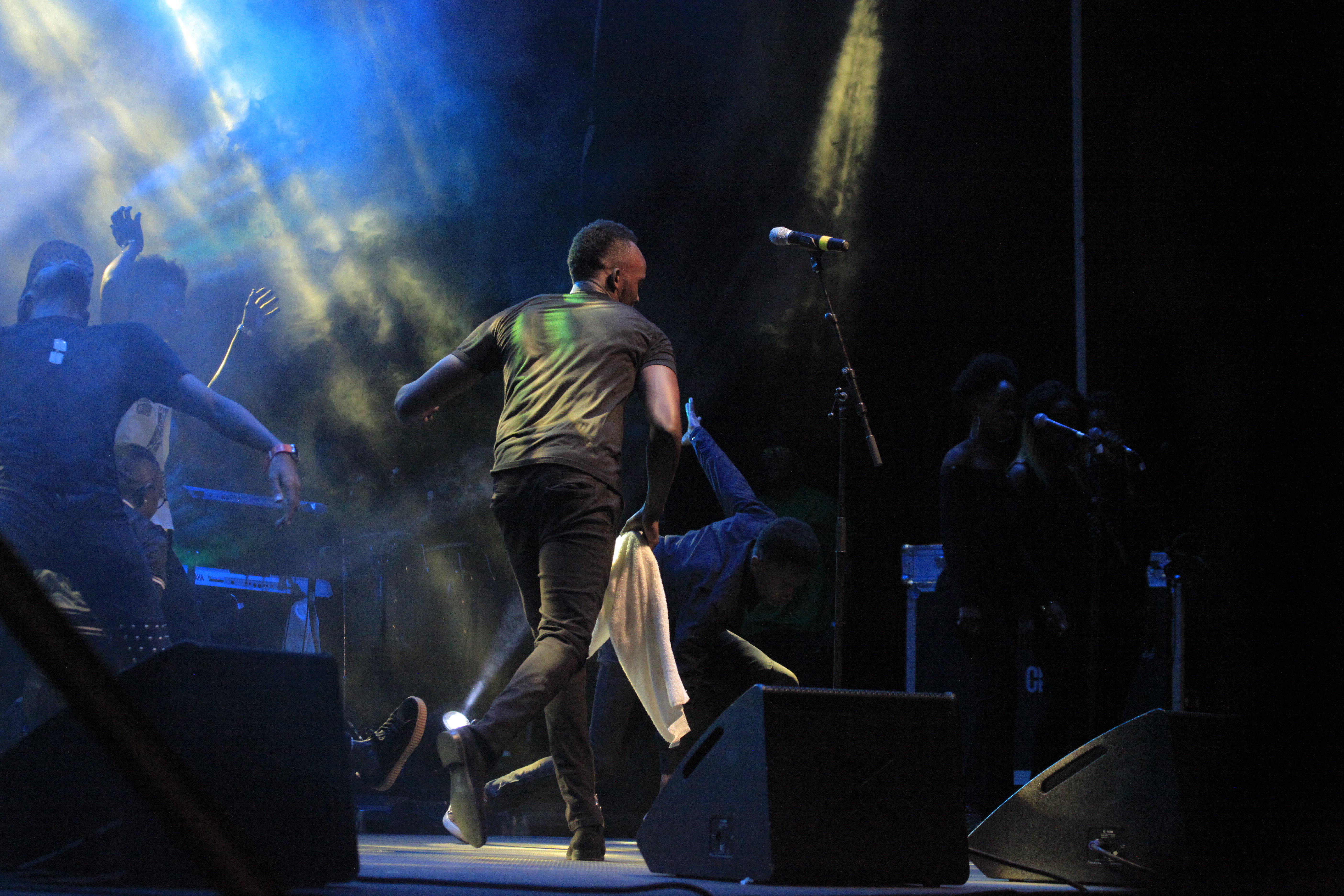 US-based Rwandan R&B singer Meddy performs during  festival at Nyamata on Saturday.