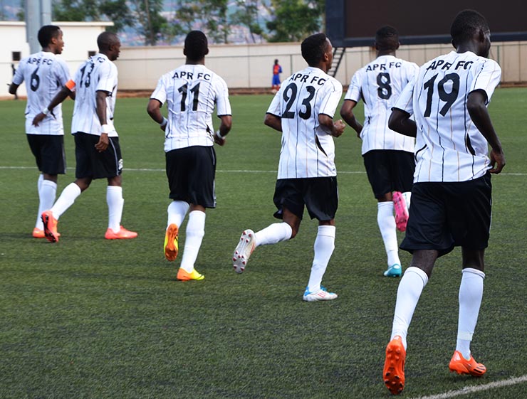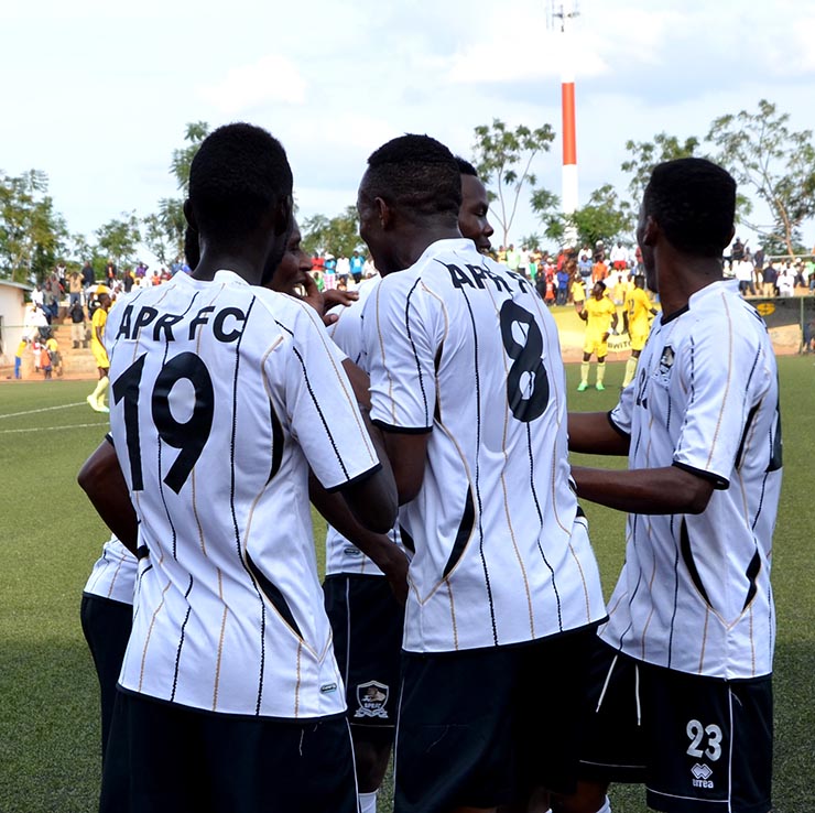 APR's young midfield player after eliminating the medium side of MUKURA's APR players posing to celebrate the victory (by Sam Ngendahimana