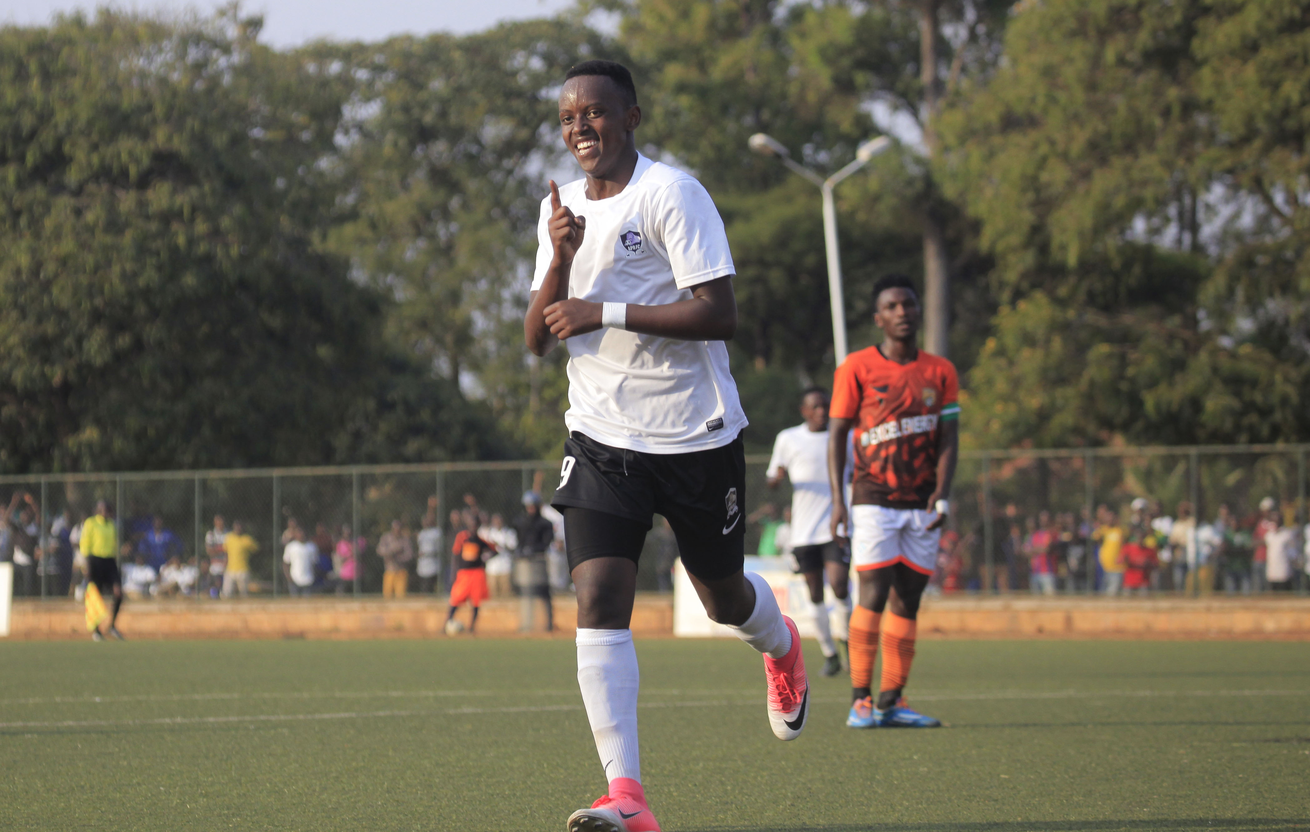 APR’s fast rising striker Innocent Nshuti celebrates his goal