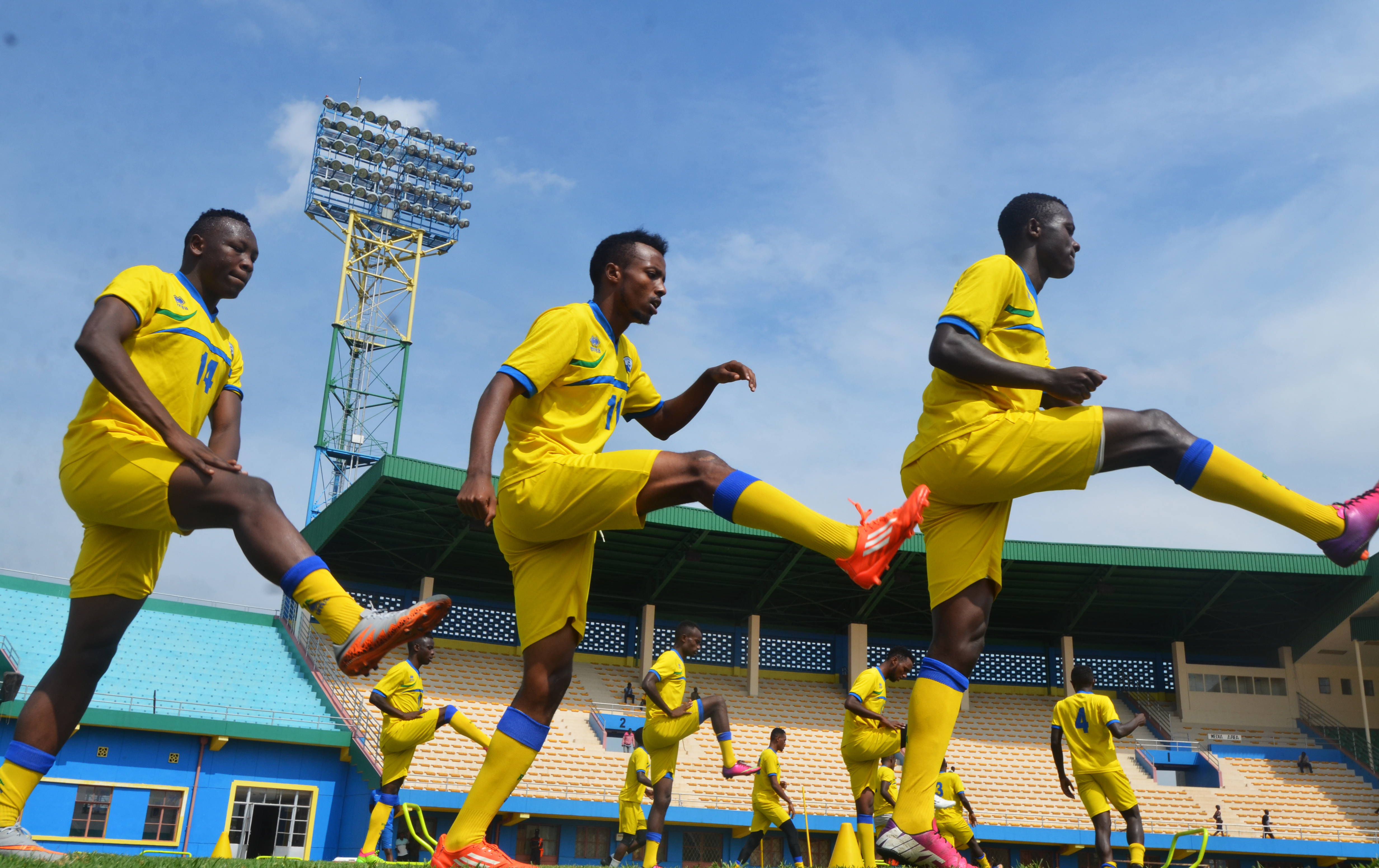 Amavubi players seen here in action ,during the training to prepare second leg match in CHAN qualifications