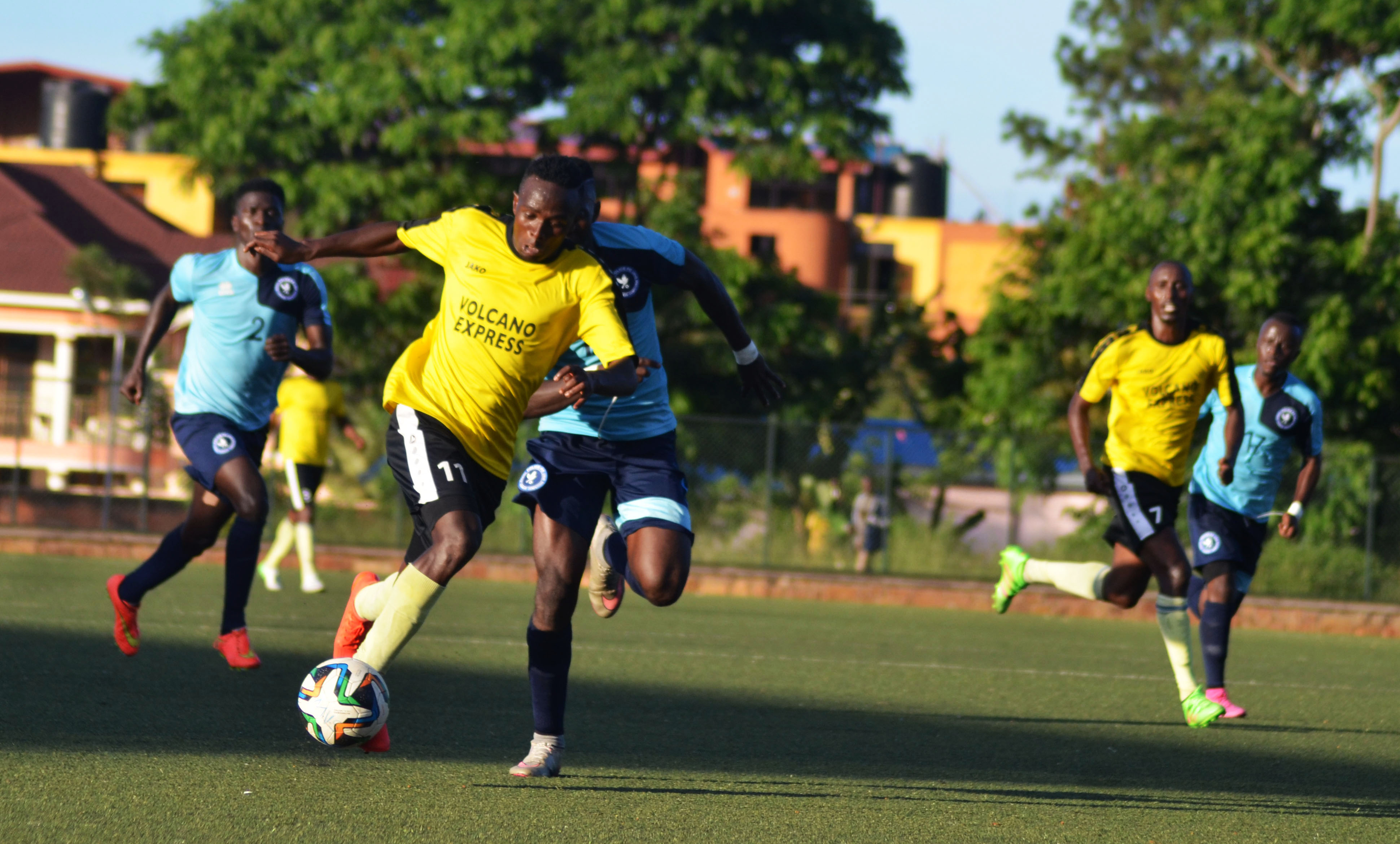 Mukura striker Yussuf Habimana controls the ball after he eliminates Police FC defenders targeting to net a goal