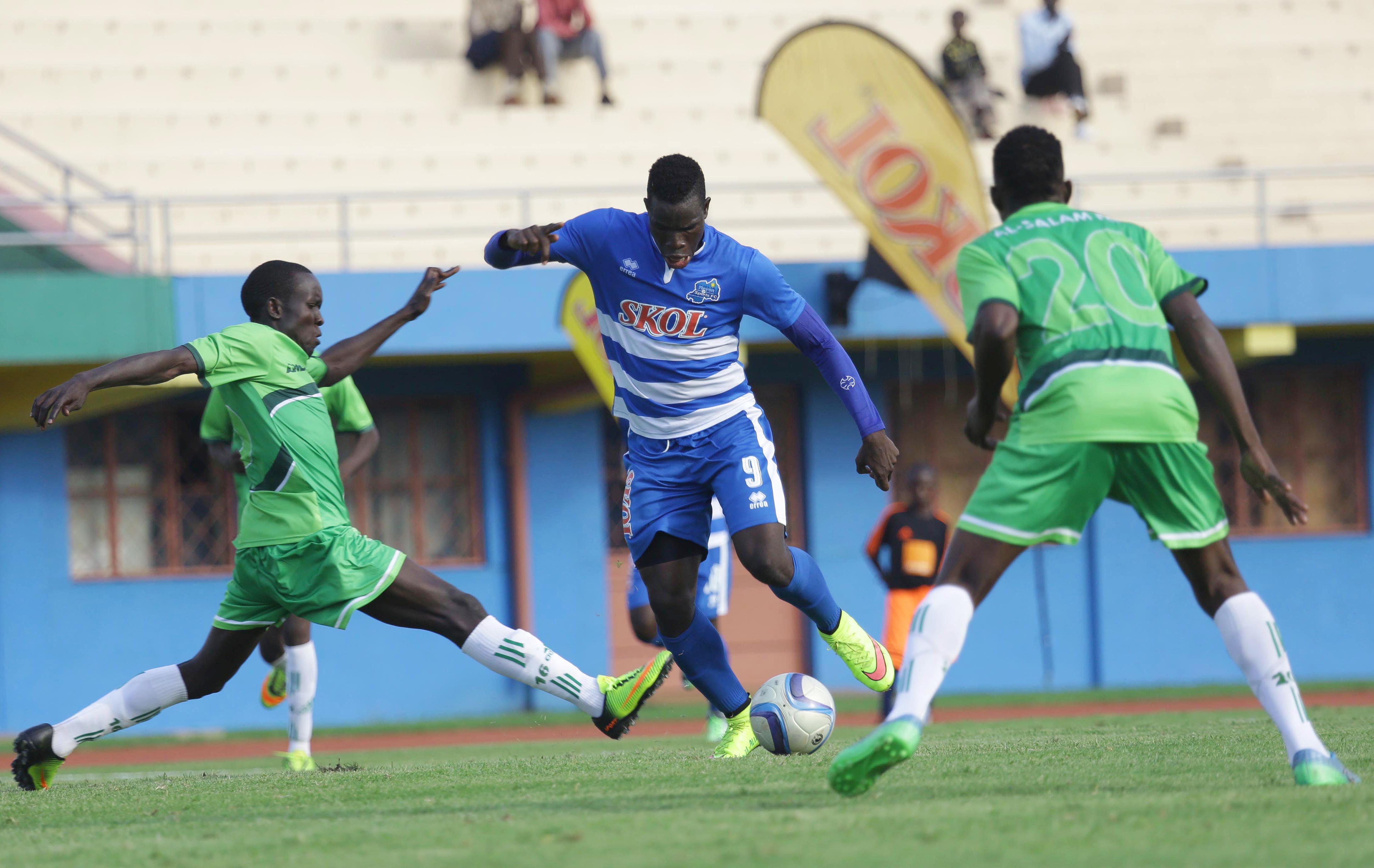 Rayon Malian striker Moussa tries to dribble past Al-Wau Salaam players of South Sudan during the confederation first round match at Amahoro stadium