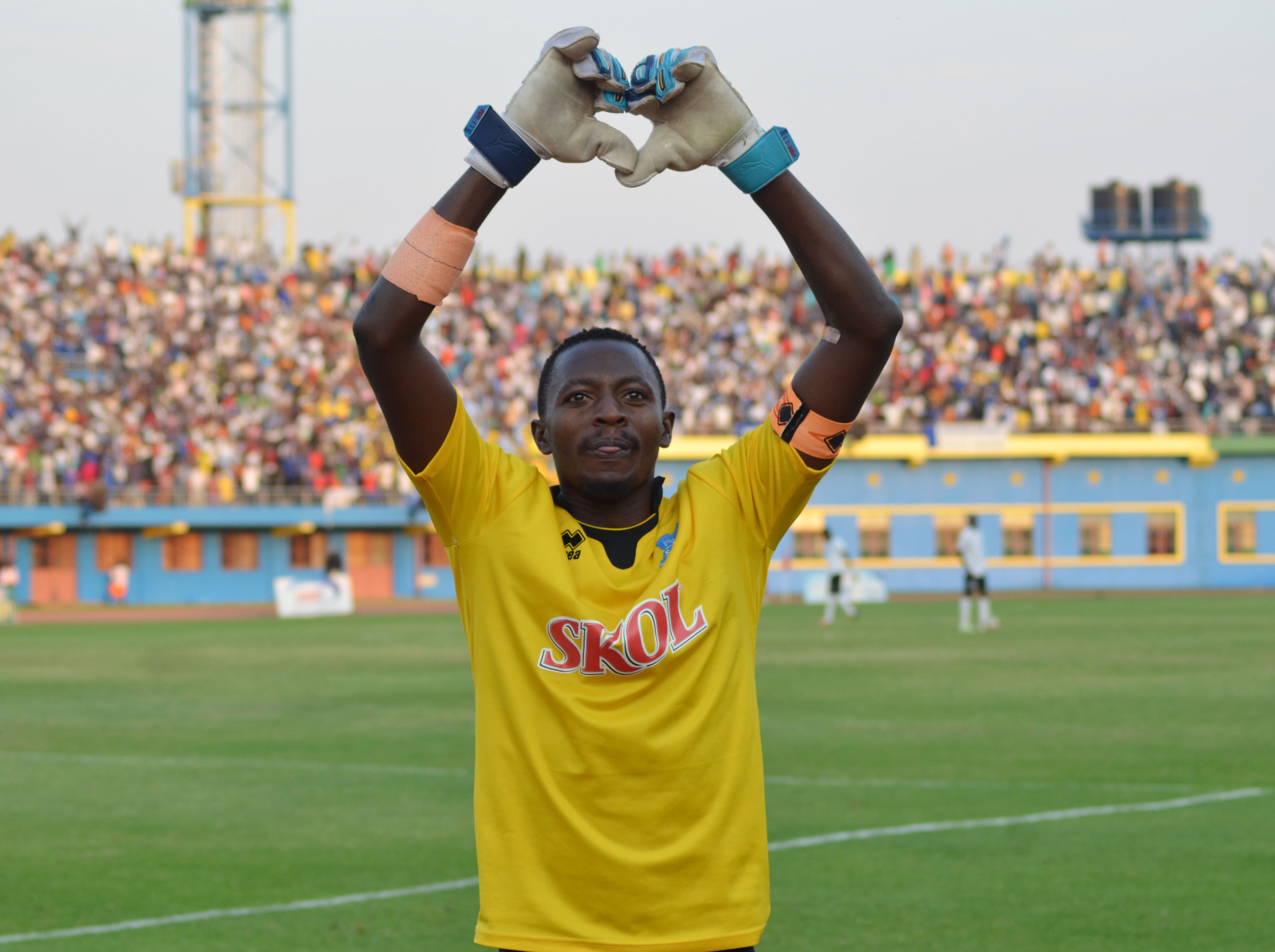 Rayon Sports goalie Jean Luc Ndayishimiye celebrates the crucial win of Peace Cup title against APR FC last year at Amahoro National Stadium