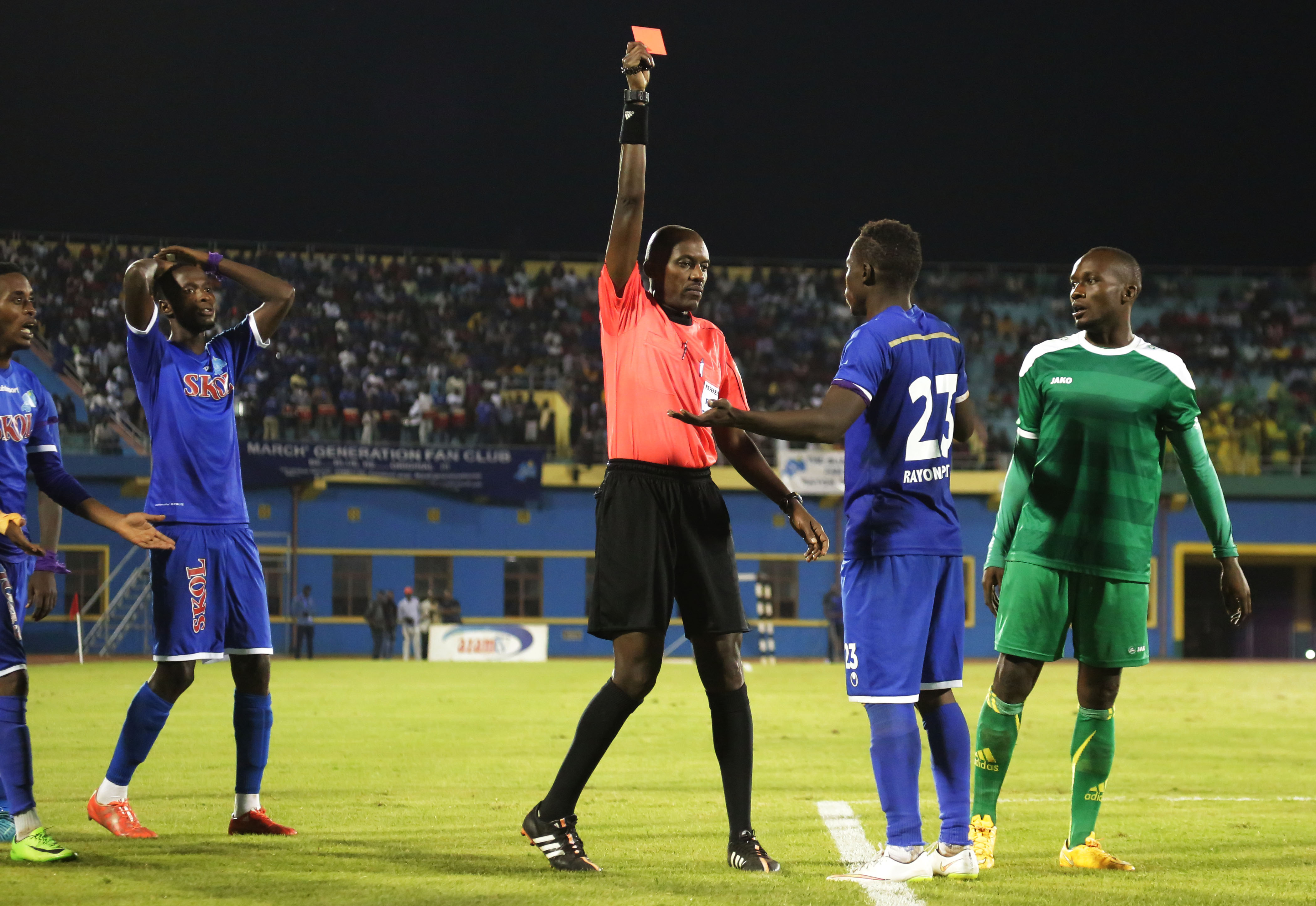 Rayon Sports’ midifielder Pierrot Kwizera was shown a red card in the second half