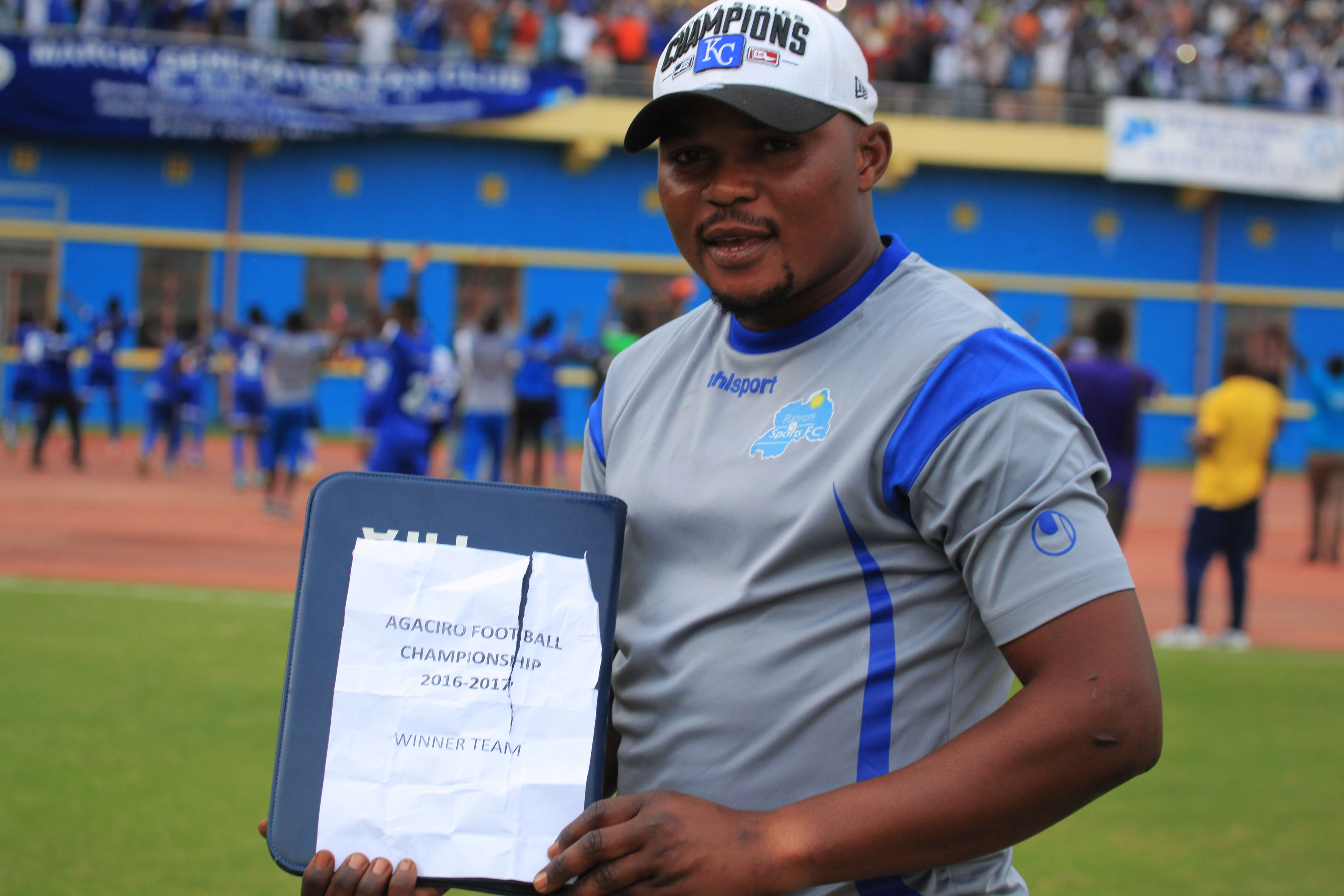 Rayon’s assistant coach Lomami holds the draw paper that allowed his club to win the Agaciro Development Fund Tourney